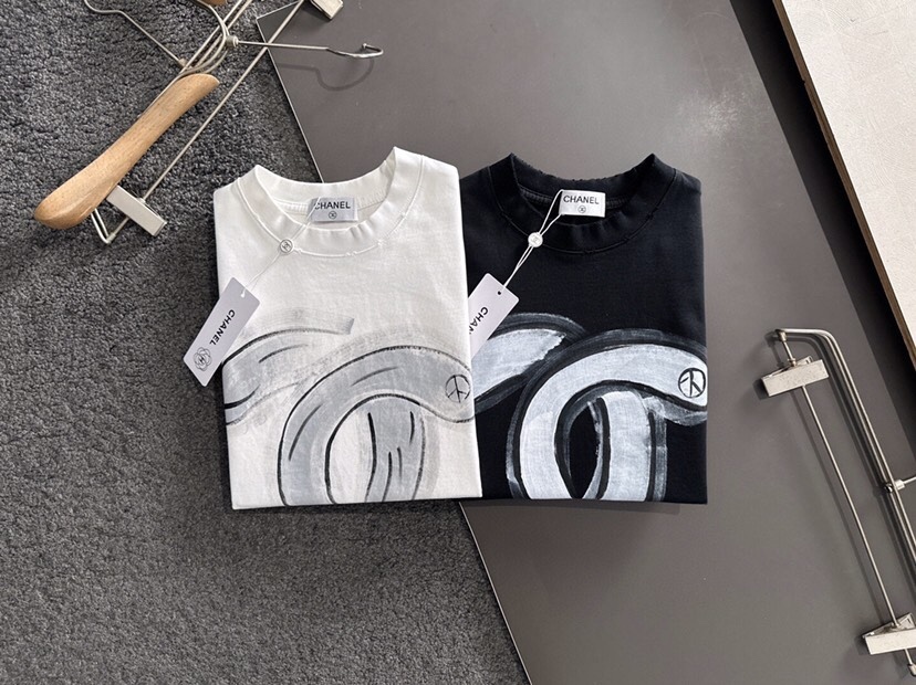 CH水墨雙C圓領時尚短袖T恤男女同款
