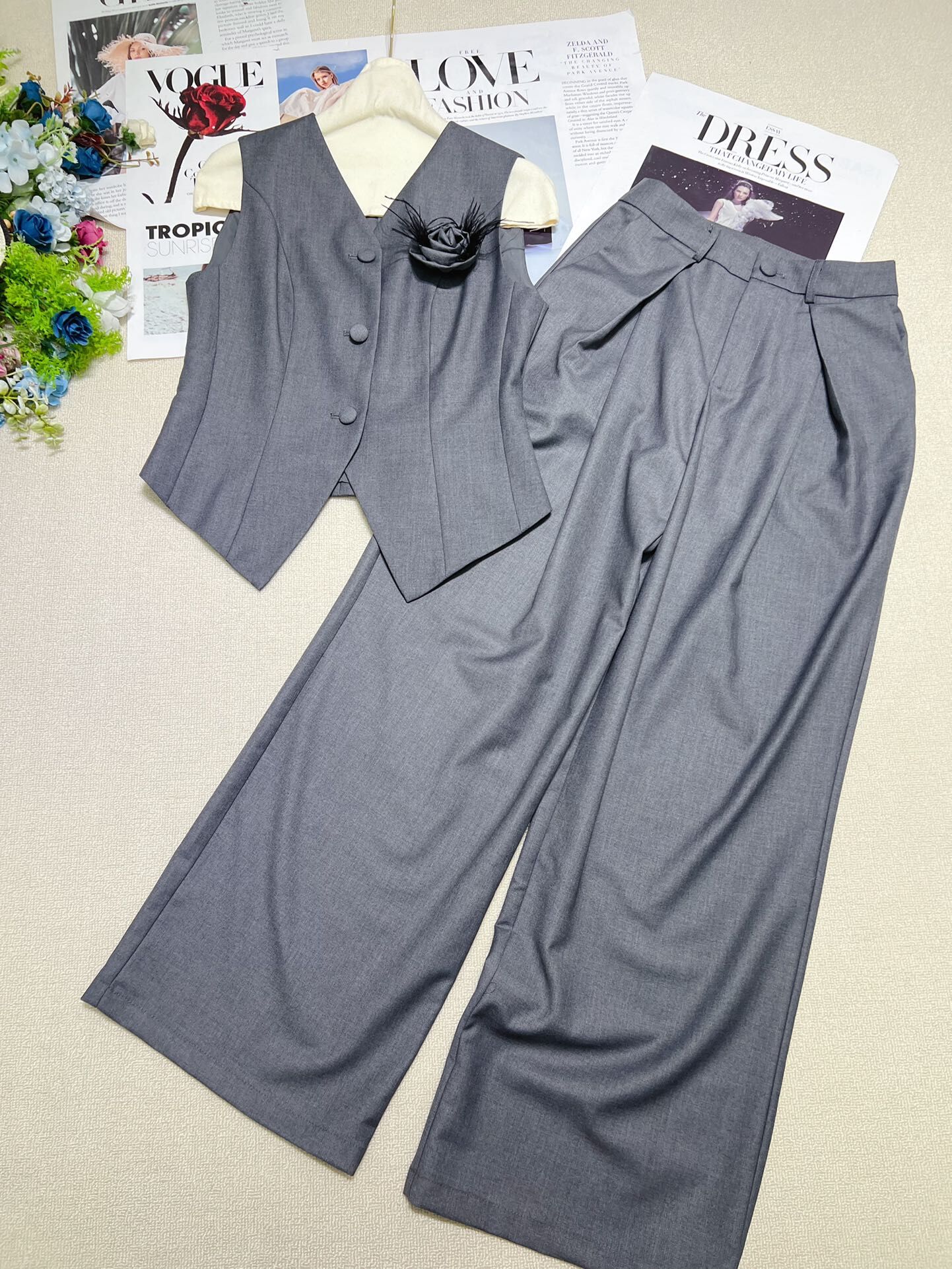 小香 🌹 老錢風鬆弛感穿搭高級立體花朵馬甲+長褲套裝