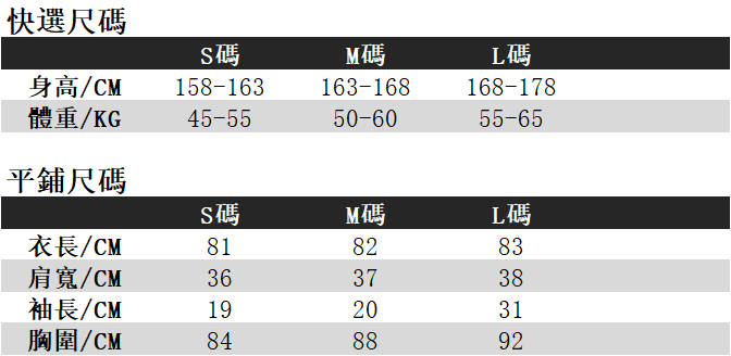 尺碼建議:正碼選購